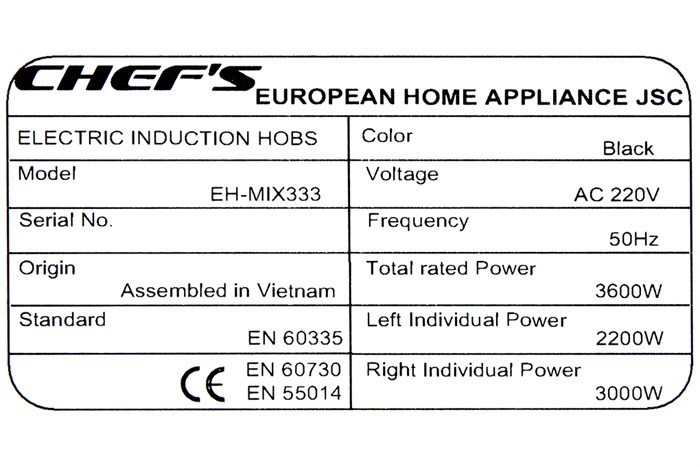 Bếp từ Chef’s nhập khẩu linh kiện từ hãng E.G.O (Đức), lắp ráp tại Việt Nam đảm bảo quy trình, chất lượng