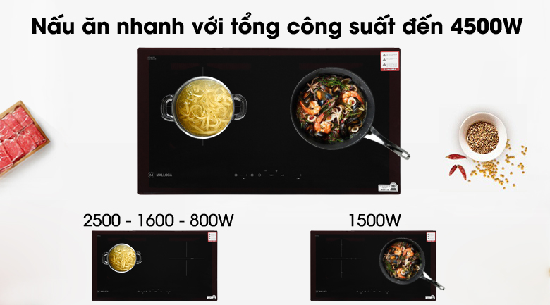 Thiết kế 2 vùng nấu giúp nấu ăn thuận tiện, tổng công suất lên đến 4500W nấu chín thức ăn nhanh chóng