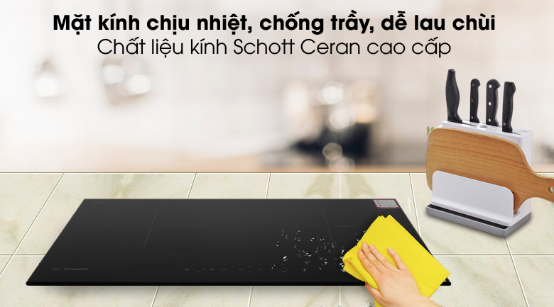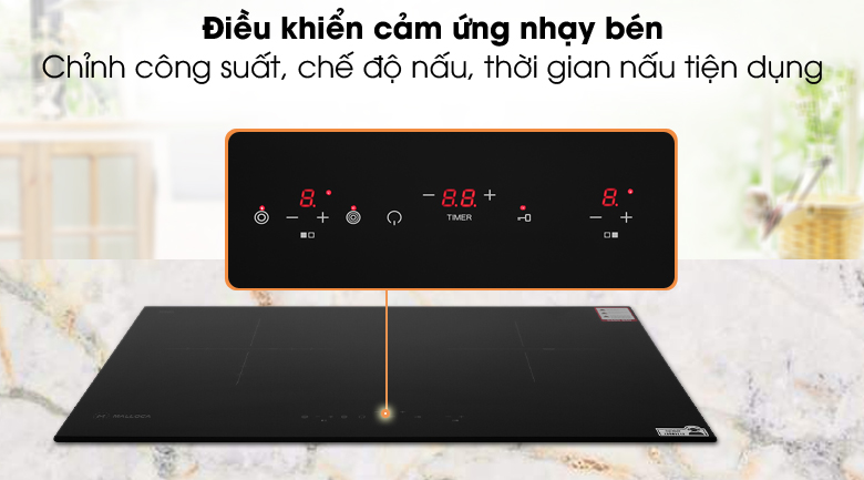 Bếp từ kết hợp hồng ngoại Malloca với thiết kế lắp âm gọn gàng, sang trọng