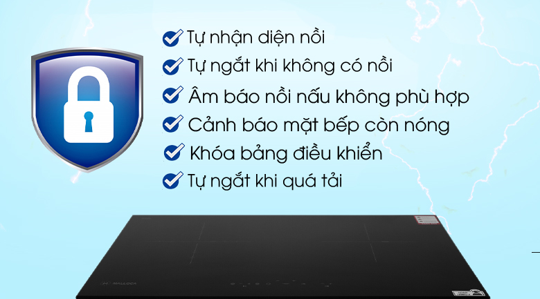 Với đèn báo mặt bếp còn nóng, tự nhận diện nồi, tự ngắt khi không có nồi đảm bảo việc sử dụng bếp thêm an toàn, bền bỉ, tiết kiệm điện năng.