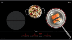 Chức năng chia sẻ công suất của ba vùng nấu tối đa 5900W: Khi một trong hai vùng nấu hoạt động ở mức công suất cao, vùng nấu còn lại sẽ tự động điều chỉnh giảm để đảm bảo tổng công suất bếp không vượt quá 5900W, bảo vệ cho các thiết bị điện khác trong gia đình không bị quá tải đường dây.