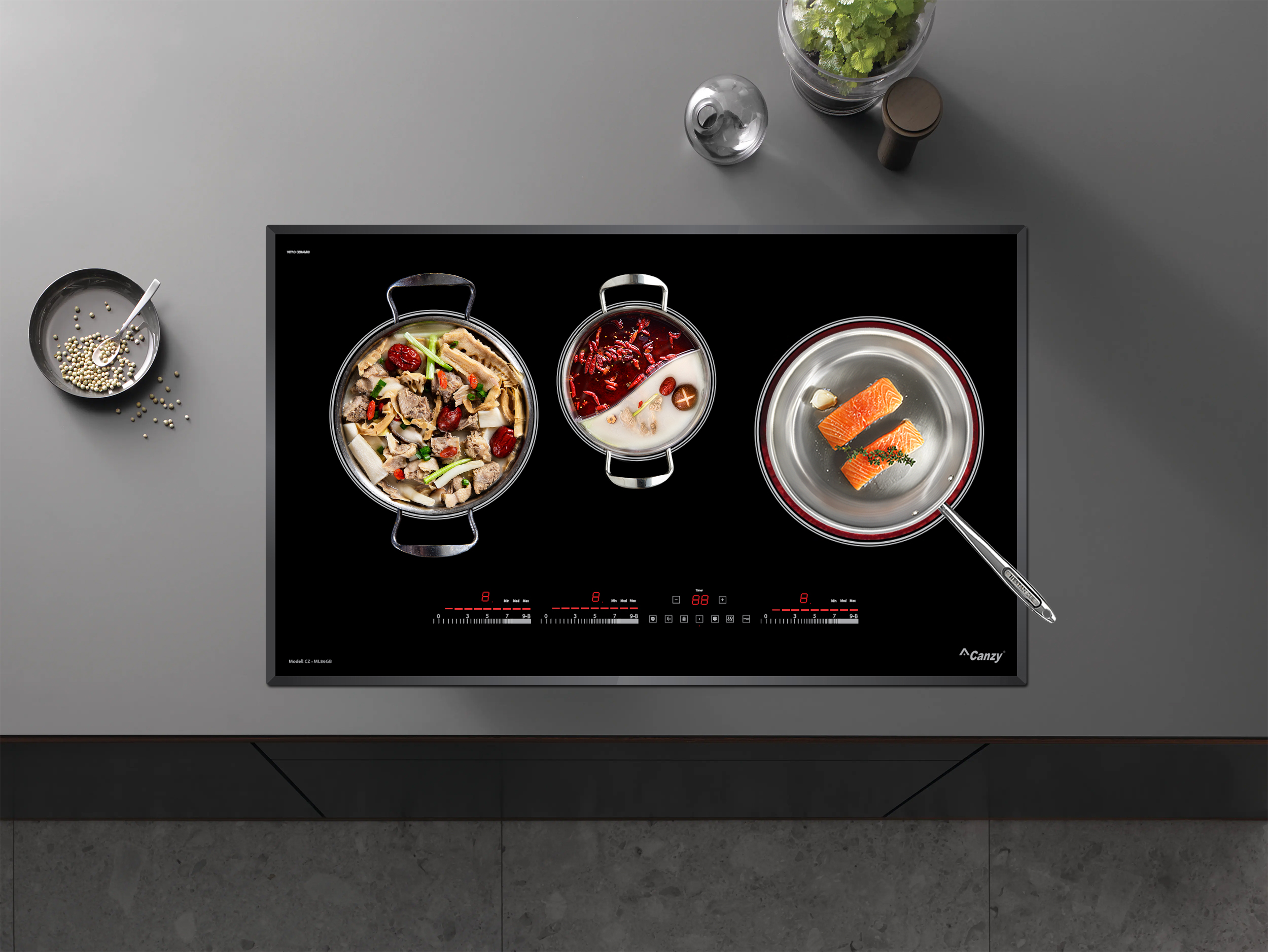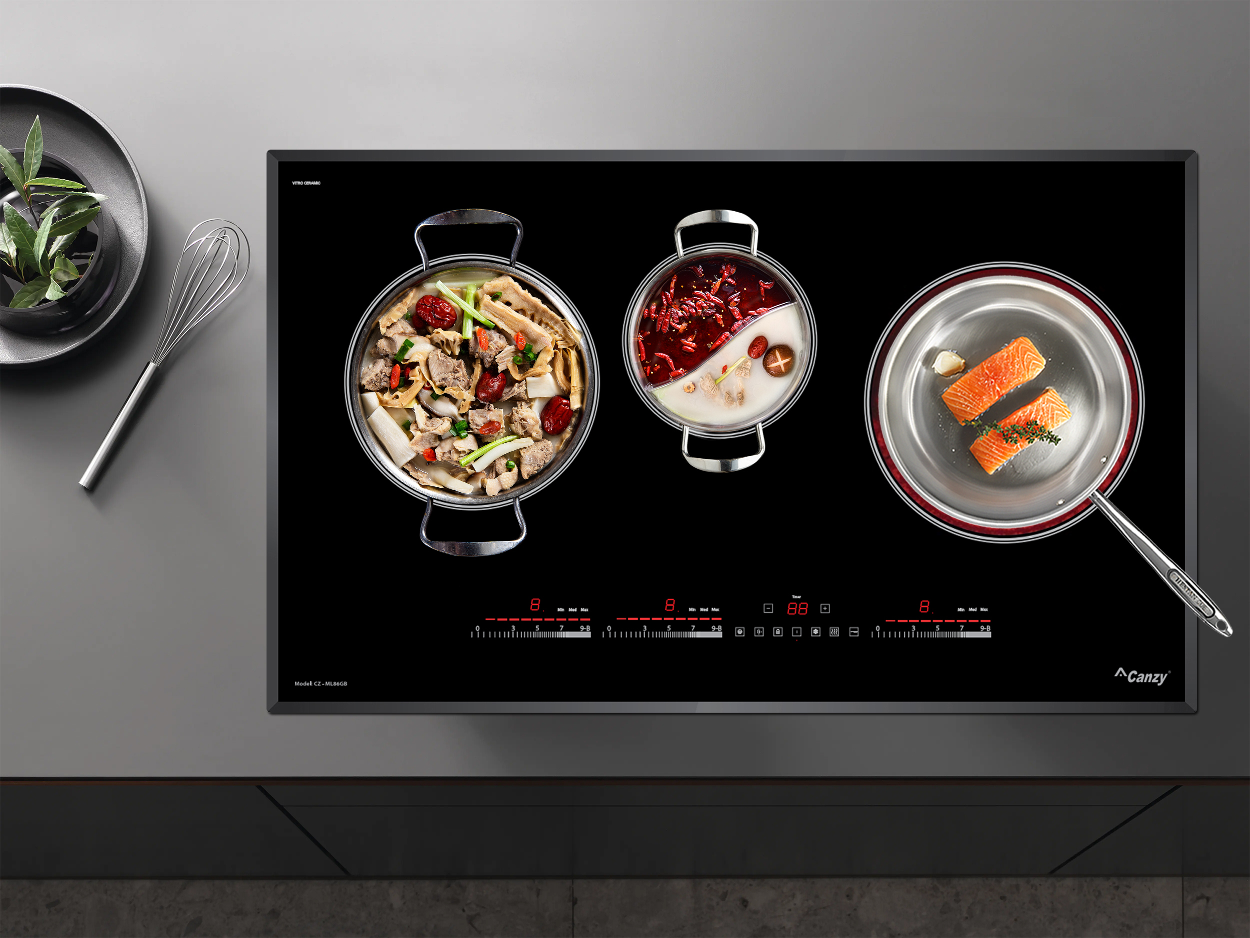 Tự động phát hiện vùng nấu và vùng nấu chỉ nóng lên khi có nồi: Các sản phẩm bếp điện từ của Canzy bao gồm CZ-ML86GB sẽ chỉ khởi động công suất khi nồi được đặt lên vùng nấu, trường hợp chưa đặt nồi khi đã khởi động, bếp sẽ không đóng công suất và cảnh báo mã lỗi không có nồi hoặc nồi không phù hợp.
