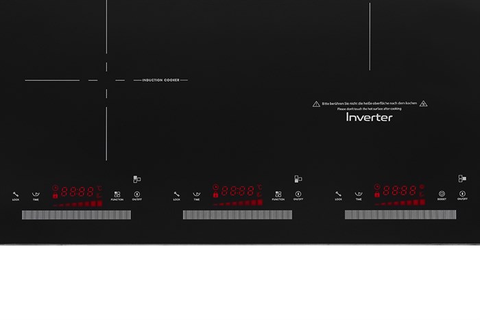 Trong đó có 2 vùng bếp từ, 1 vùng bếp hồng ngoại giúp nấu ăn tiết kiệm thời gian. Cho không gian bếp thông thoáng, rộng rãi hơn nhờ thiết kế có thể lắp đặt âm, nếu căn bếp không phù hợp để lắp âm, bạn có thể chọn cách đặt bếp trên kệ, sử dụng dễ dàng.