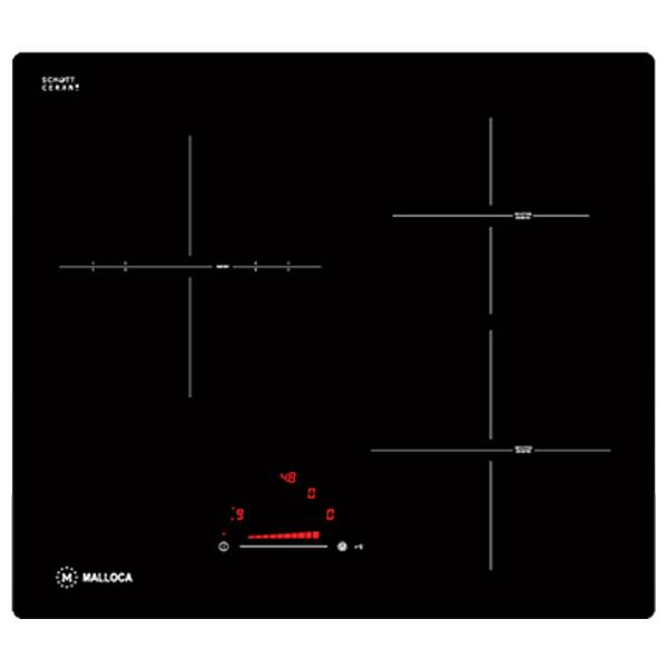 Bếp điện từ Malloca MIR 593 có thiết kế gồm 3 vùng nấu rộng rãi cùng những chức năng hiện đại chắc chắn sẽ đem đến cảm hứng tuyệt vời cho người nội trợ trong căn bếp gia đình. Mặt bếp bằng kính Schott Ceran vát cạnh, đẹp mắt