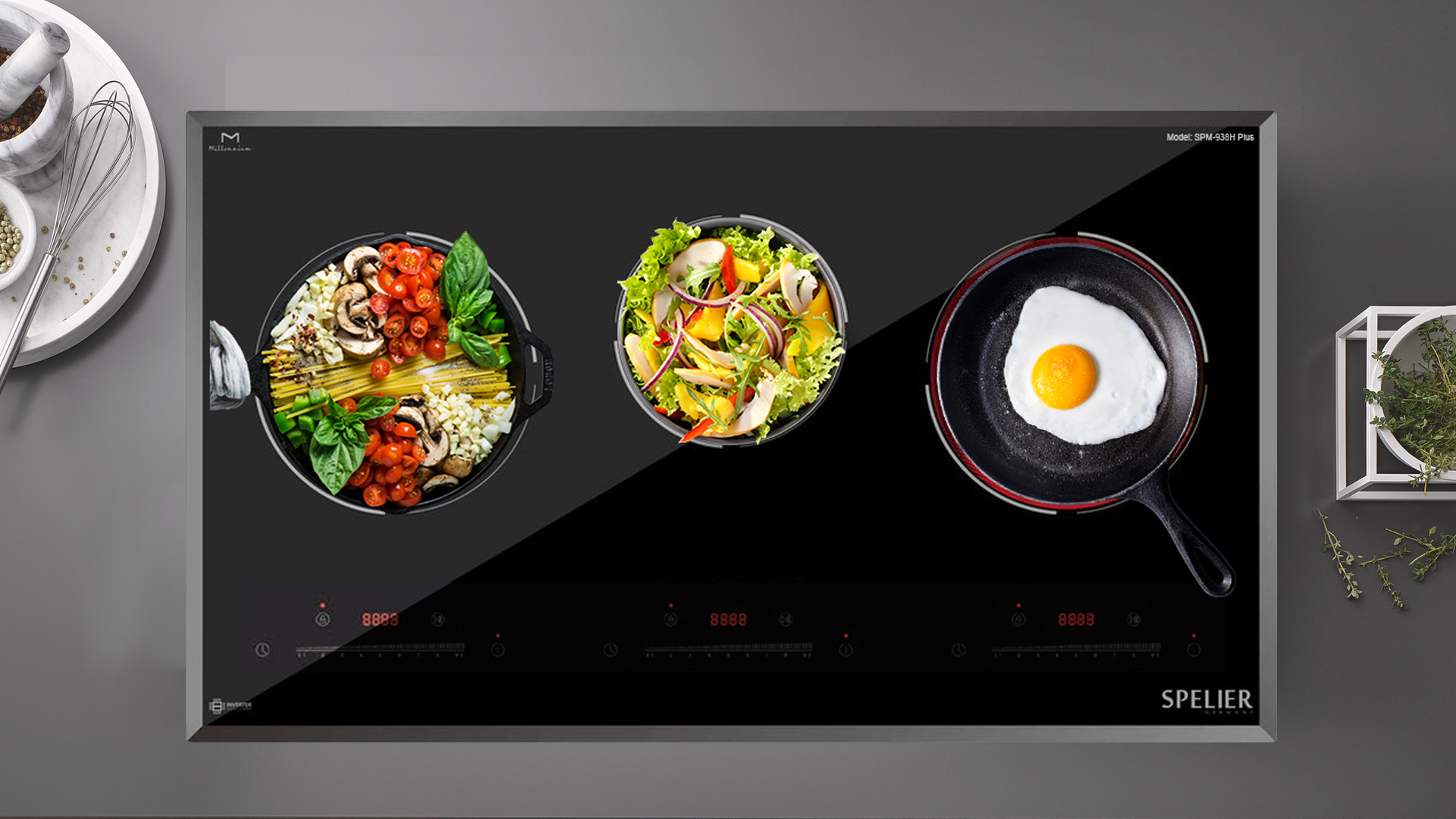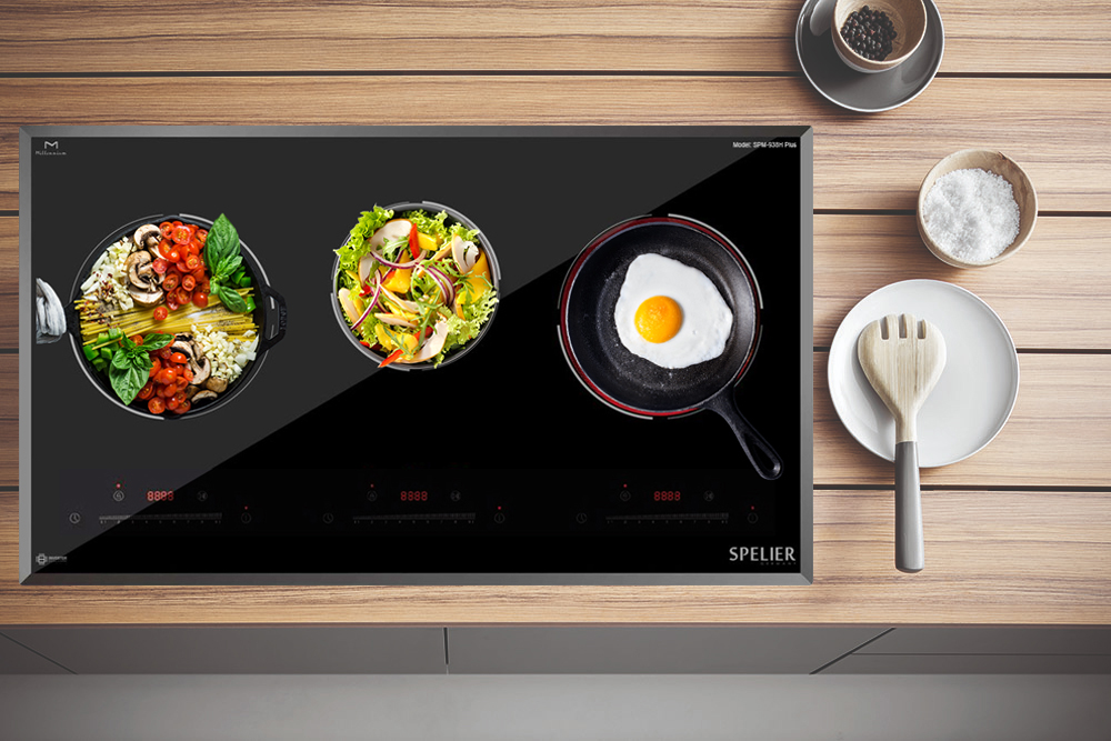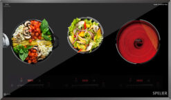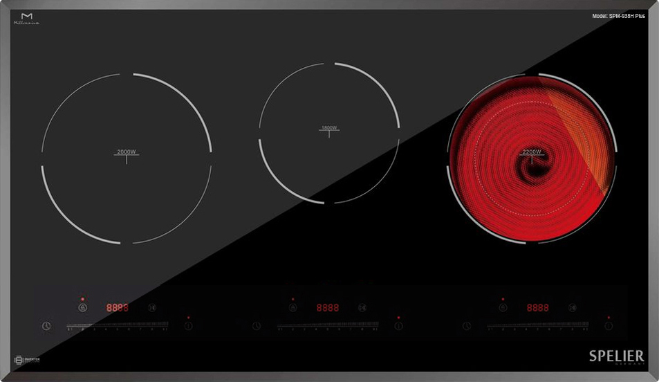 Bếp điện từ Spelier SPM-938H Plus gồm 3 vùng nấu có tổng công suất 6000W. Vùng nấu từ bên trái có khả năng đun nấu siêu nhanh và tiết kiệm điện năng có thể đạt mức công suất tối đa 2000W. Vùng nấu từ giữa có khả năng đun nấu siêu nhanh và tiết kiệm điện năng có thể đạt mức công suất tối đa 1800W. Vùng nấu hồng ngoại phải sử dụng mâm nhiệt Hi-light 2 vòng nhiệt có công suất 2200W.