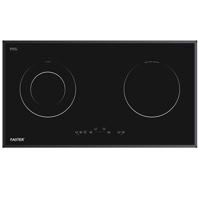 Bếp điện từ Faster FS-2SIR gồm 2 vùng nấu với tổng công suất 3900W, 1 vùng nấu từ bên phải có khả năng đun nấu siêu nhanh và tiết kiệm điện năng với công suất 1500W có thể đạt mức công suất tối đa Booster 2000W và 1 vùng nấu hồng ngoại bên trái sử dụng mâm nhiệt EIKA (Made in Spain) với 02 vòng nhiệt với vòng nấu nhỏ có công suất 800W cùng vòng nấu lớn có công suất 1900W.