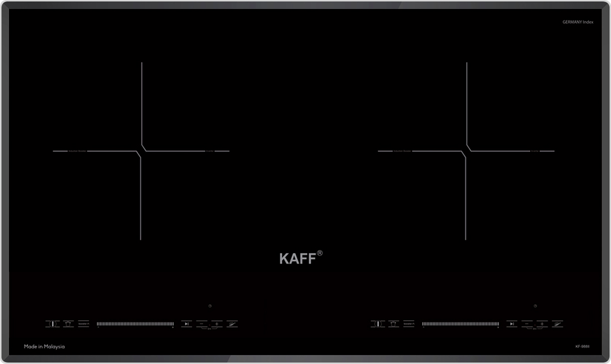 Bếp từ Kaff KF-988II thiết kế bảng điều khiển dạng trượt Slider Control độc lập cho từng vùng nấu cùng các tiện ích được cài đặt sẵn. Siêu nhạy, dễ dàng sử dụng và phù hợp với nhiều lứa tuổi.