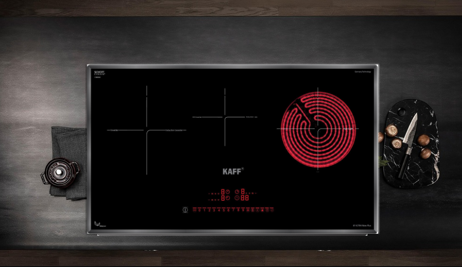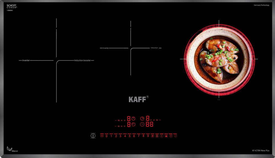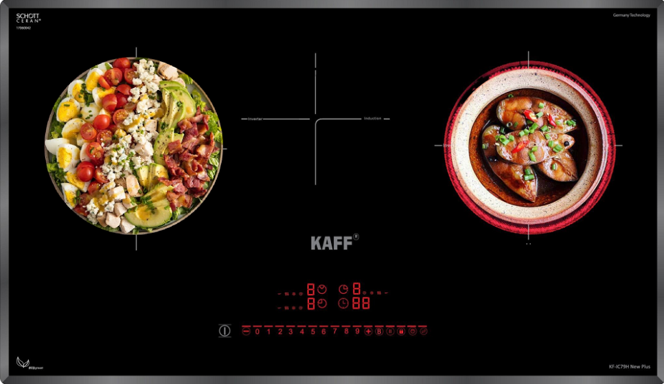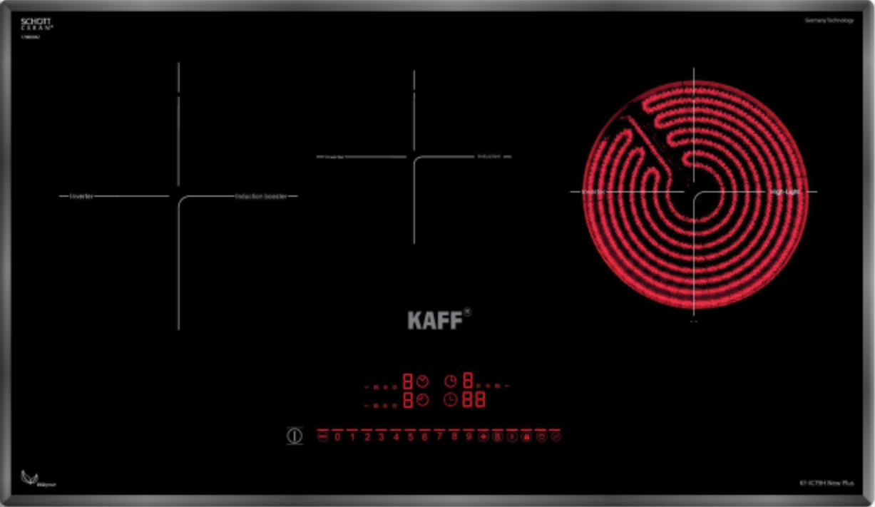 Bếp điện từ 3 vùng nấu: 2 từ kết hợp 1 hồng ngoại KAFF KF-IC79H New Plus, thuộc dòng bếp điện từ cao cấp của thương hiệu thiết bị nhà bếp nổi tiếng tại Đức KAFF, là sự kết hợp hoàn hảo giữa 2 bên bếp từ (sử dụng các bộ nồi chảo inox từ, tiết kiệm điện và đun nấu nhanh hơn) và 1 bên bếp điện hồng ngoại (không kén nồi và có thể nướng trực tiếp trên bề mặt bếp), 3 vùng nấu hỗn hợp (2 từ, 1 điện) phù hợp với gia đình đông thành viên và có không gian nhà bếp rộng. giúp cho cuộc sống của bạn thuận tiện hơn.