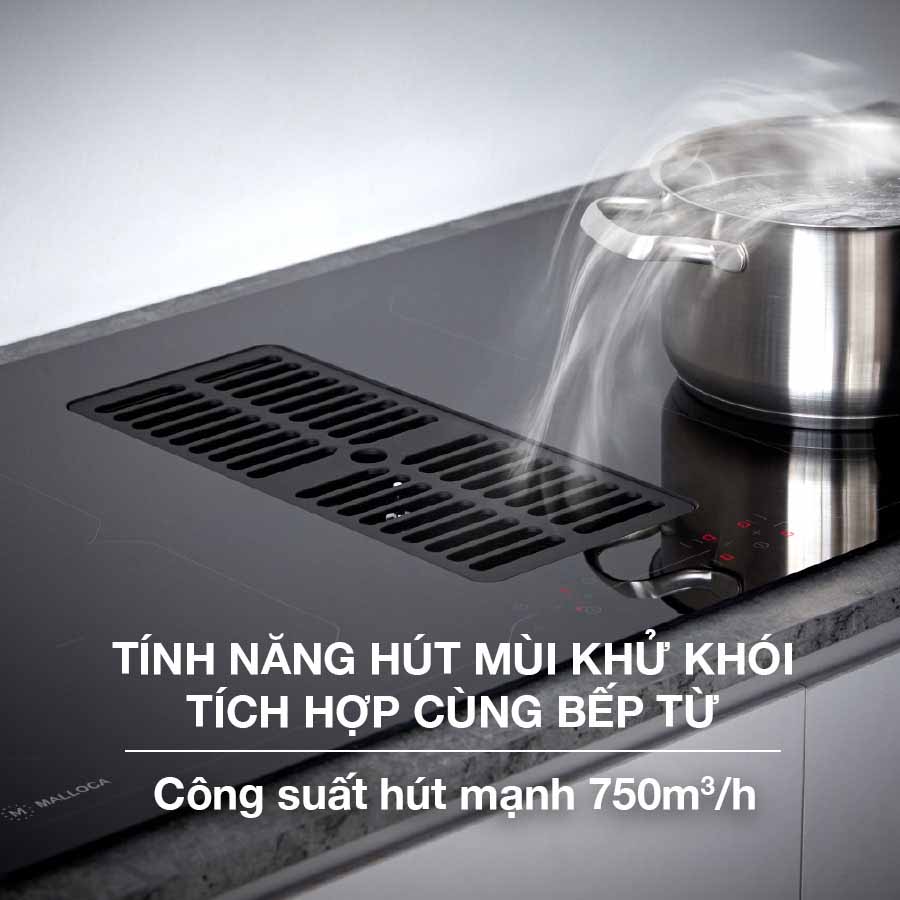 Malloca HIH- 864 LI trang bị 4 vùng nấu từ, giúp bạn thoải mái nấu 4 món ăn cùng lúc trên bếp hoặc đặt vỉ nướng để thực hiện các món BQQ cho gia đình. Hai bên là 4 vùng nấu, ở giữa là máy hút mùi, tùy chỉnh công suất linh hoạt phù hợp với nhiều mức độ khói mùi trong bếp.