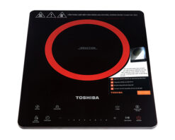 Bếp từ Toshiba thiết kế hiện đại, màu đen lịch lãm, 4 góc bo cong mềm mại, tạo điểm nhấn cho không gian sử dụng thêm sang trọng