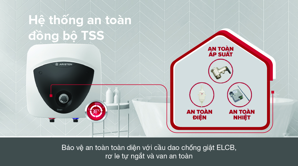 – Máy nước nóng gián tiếp Ariston được trang bị hệ thống chống giật, chống bỏng TSS bao gồm: