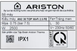 Có khả năng tạo ra Ion Bạc trong quá trình vận hành, bình tắm nóng lạnh Ariston AN2 30 TOP WIFI sẽ giúp kháng khuẩn, làm sạch nước, mang đến cho bạn một nguồn nước ấm tinh khiết, thư giãn và an toàn cho làn da.