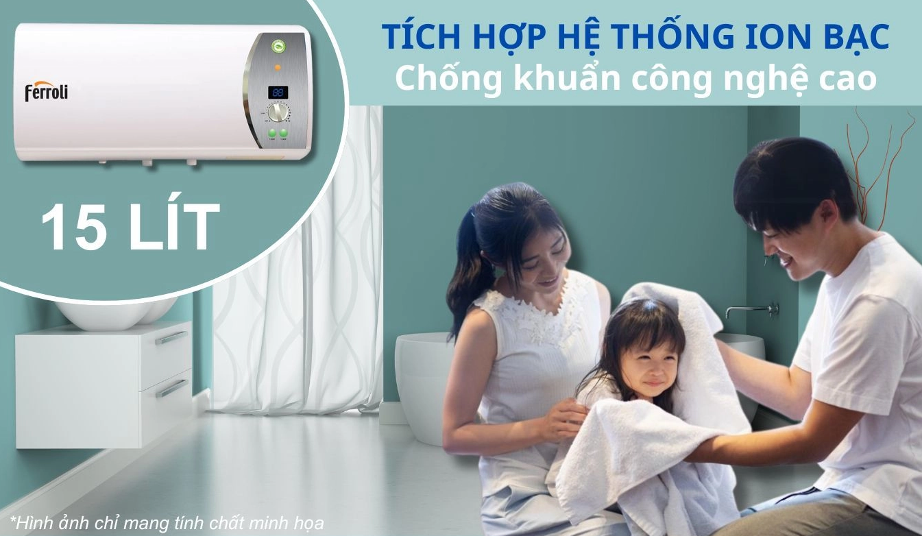Máy nước nóng Ferroli có hệ thống ion bạc chống khuẩn công nghệ cao
