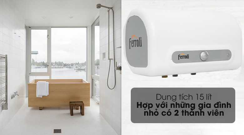 Với dung tích 15 lít, chiếc bình tắm nóng lạnh Ferroli này sẽ là sự lựa chọn lý tưởng cho gia đình có 2 thành viên hoặc người sống độc thân.