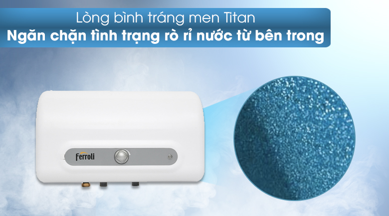 Lòng bình tráng men Titan hạn chế tình trạng rò rỉ nước bên trong gây chập mạch, cháy nổ. Ngoài ra, lớp men được tráng trong lòng bình có khả năng chống ăn mòn của nước và đảm bảo độ bền tối đa cho sản phẩm.