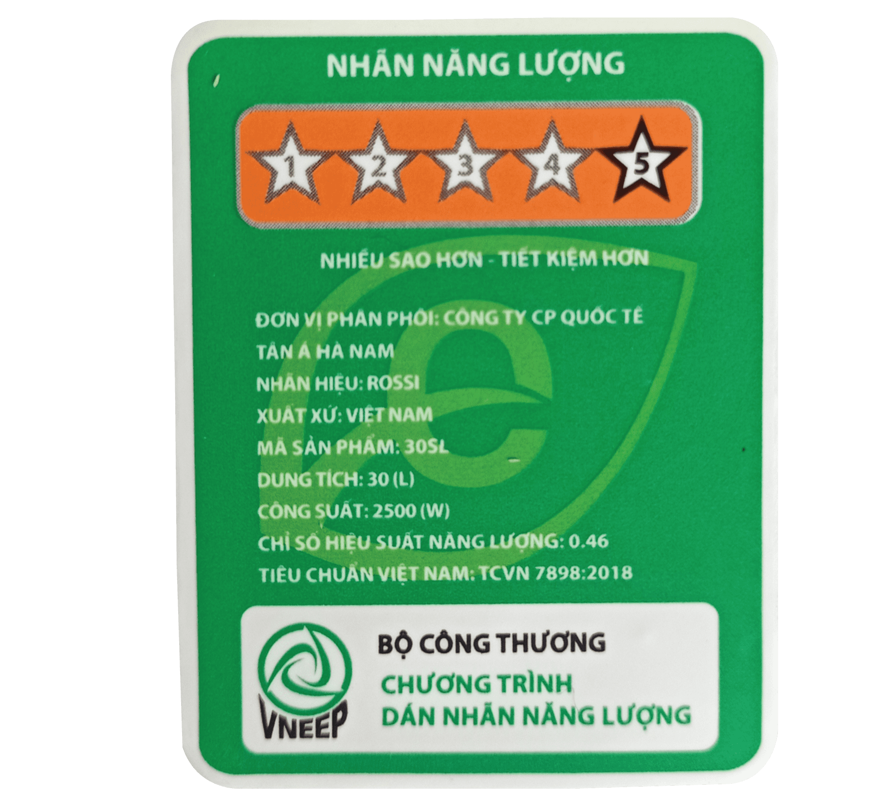Bình nóng lạnh có công suất 2.500W nước nóng rất nhận không cần chờ đợi lâu để sử dụng. sản phẩm RPO 30SL đạt nhãn năng lượng 5 sao về tiết kiệm điện giúp bạn giảm hóa đơn tiền điện so với các dòng sản phẩm khác cùng loại trên thị trường