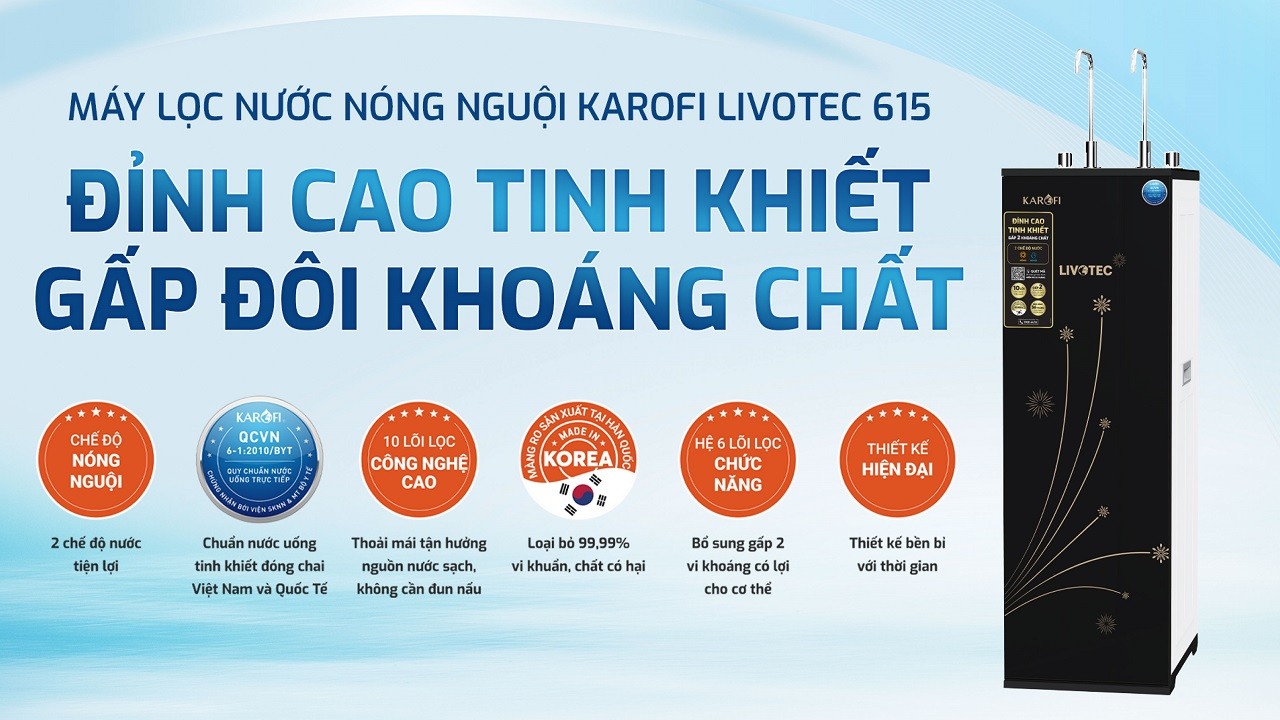 MÁY LỌC NƯỚC NÓNG NGUỘI KAROFI LIVOTEC 615: ĐỈNH CAO TINH KHIẾT – GẤP ĐÔI KHOÁNG CHẤT