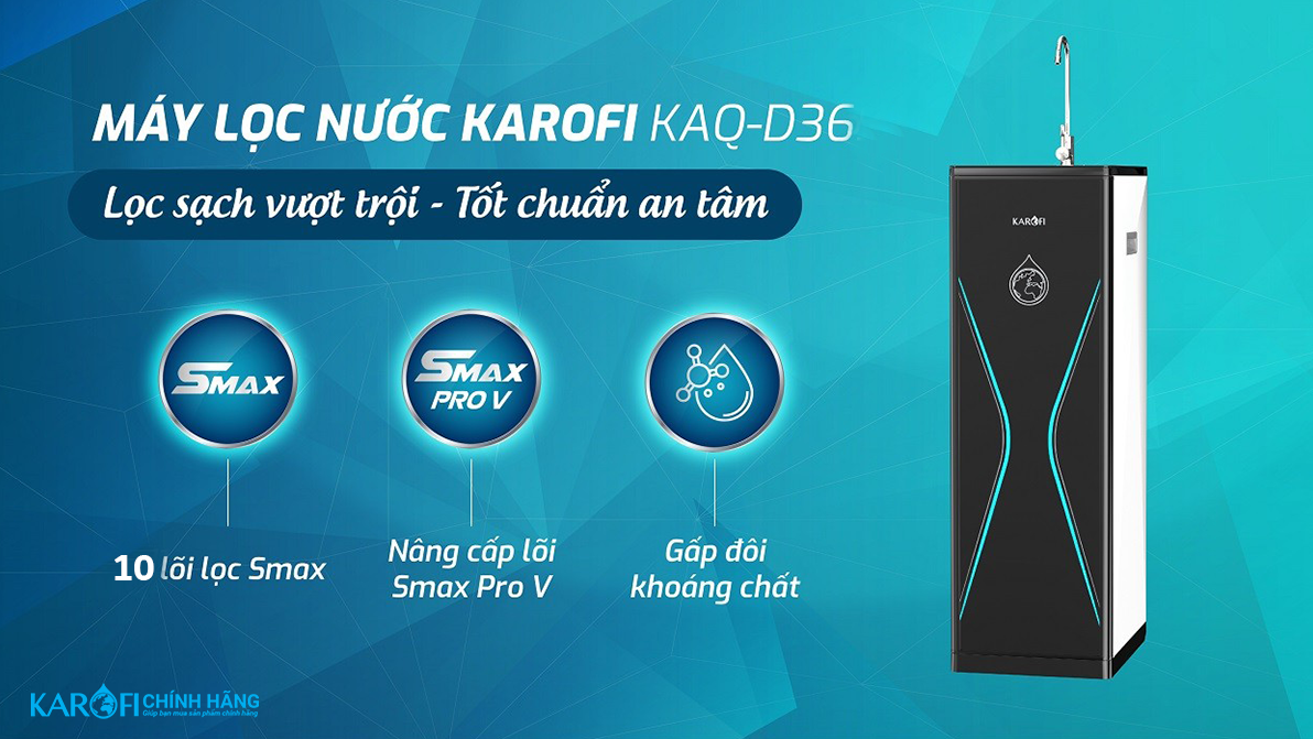 Sử dụng tới 10 lõi lọc Smax mạnh mẽ, Máy lọc nước Karofi Karofi KAQ-D36 đem đến nguồn nước sau lọc không chỉ sạch mà còn tốt vượt trội để chăm sóc và bảo vệ sức khỏe cho cả gia đình