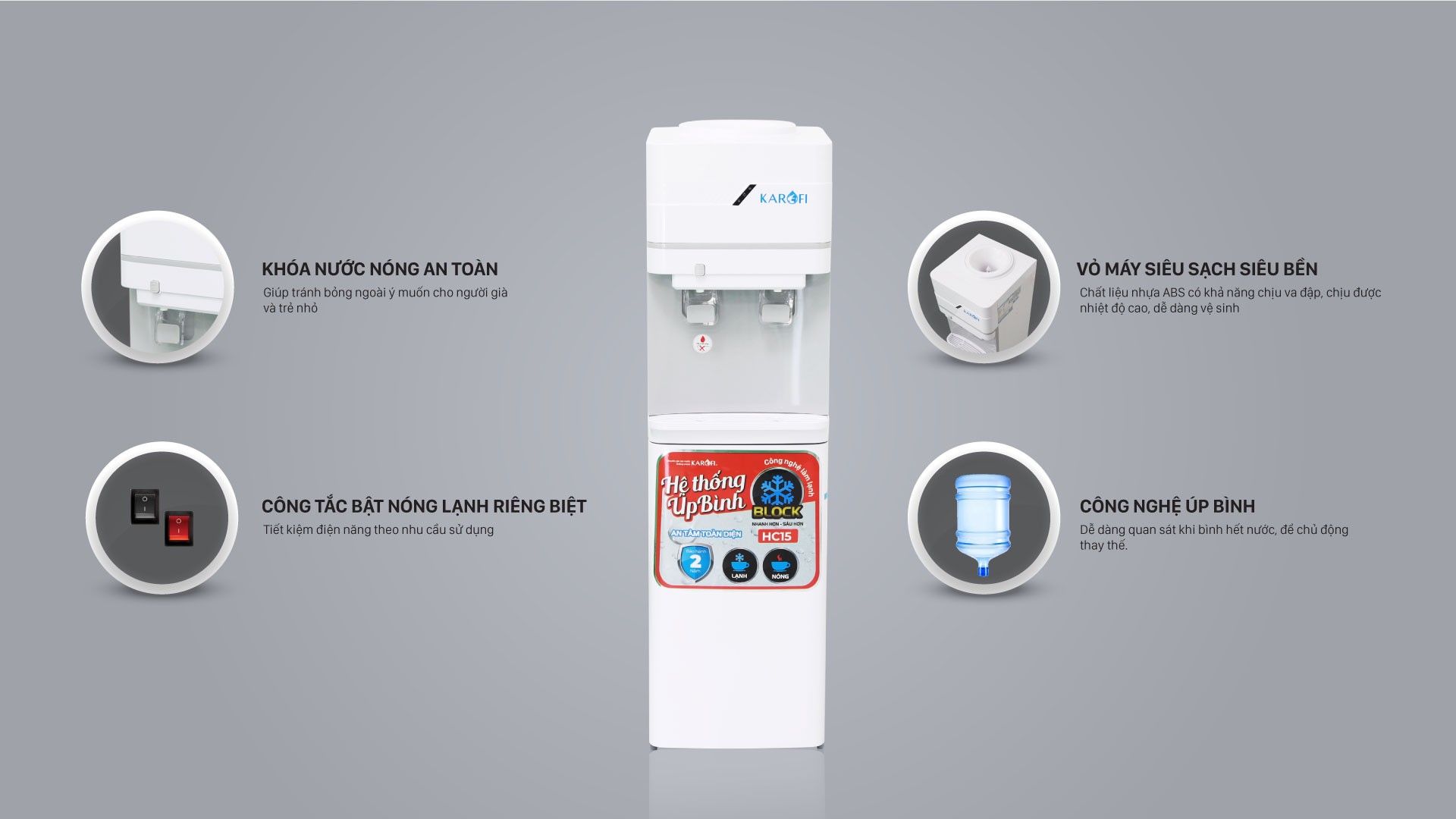 Không mất thời gian chờ đợi cần đun nấu, nóng lạnh tiện dụng, dễ dàng sử dụng, cây nước nóng lạnh HC15 đem đến sự an tâm và thoải mái cho mọi gia đình.