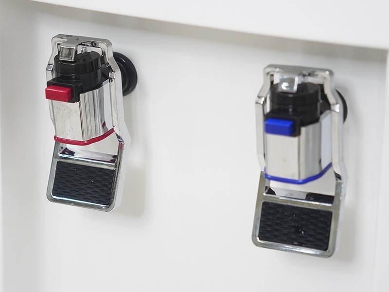 Cây nước nóng lạnh úp bình Fujihome WD676C được trang bị hai vòi nước riêng biệt tương ứng với chế độ nóng và lạnh, người dùng dễ dàng phân biệt qua màu sắc xanh – đỏ đặc trưng. Cần gạt lấy nước dạng cơ, dễ sử dụng và hạn chế tối đa tình trạng rò rỉ nước, phù hợp cho cả người lớn và trẻ nhỏ.