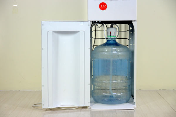 - Điểm khác biệt của Cây nước nóng lạnh bình âm cao cấp FujiE WD6000C thiết kế với bình âm hay còn gọi bình nước đặt ngay phía trong thân máy, với thiết kế này giúp cho việc thay bình dễ dàng ngay cả đối với chị em phụ nữ, tăng tính thẩm mỹ, giảm khả năng bị đổ bình ở các khu vực công cộng, nhiều người qua lại.