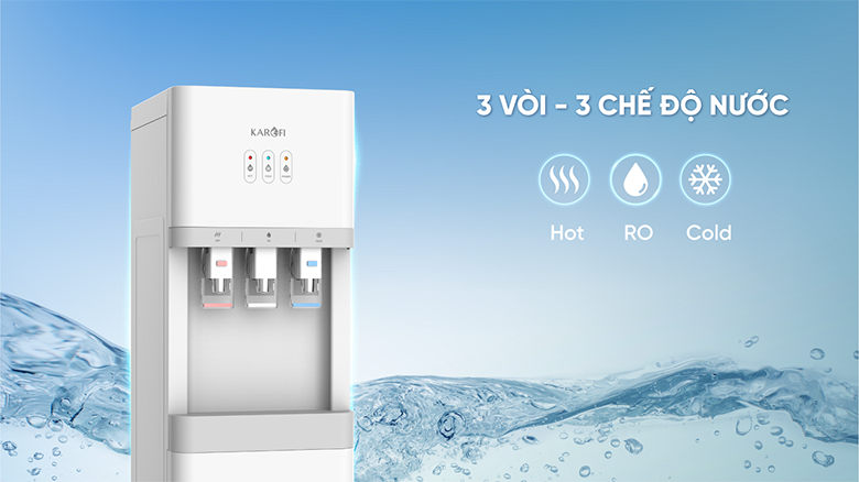 Máy làm nóng lạnh nước uống Karofi HCV206 được trang bị 3 vòi lấy nước với 3 chế độ riêng biệt Nóng – Lạnh – Thường đáp ứng mọi nhu cầu về nước uống của gia đình bạn trong 1 thiết bị. Dễ dàng lấy nước sử dụng bằng cần gạt, không cần nhiều thao tác rắc rối như đun nước hay để nước vào tủ lạnh và chờ đợi. Đèn led ngay mặt trước máy giúp người dùng nhận biết máy đang trong quá trình đun nóng/làm lạnh, hay đã đạt nhiệt độ để sử dụng.