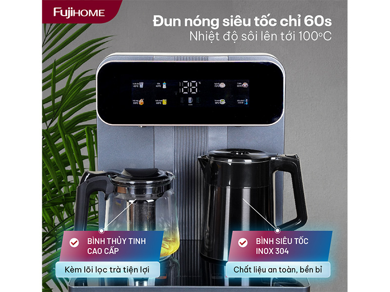 Cây nước nóng lạnh Fujihome TB243A hỗ trợ làm lạnh và làm nóng nhanh chóng cùng khả năng pha trà, cà phê tự động, sẽ là lựa chọn lý tưởng cho những ai yêu thích sự tiện nghi và chuyên nghiệp.