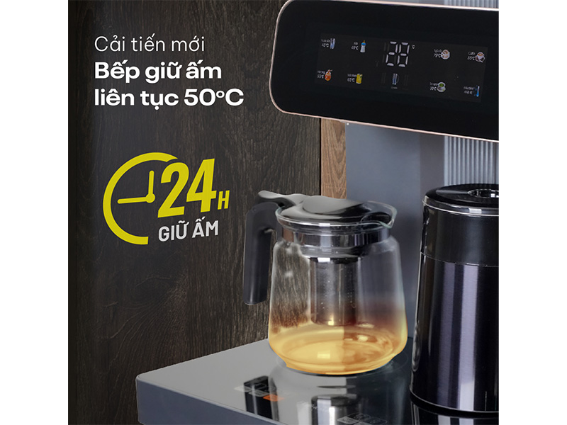 Sản phẩm được trang bị màn hình cảm ứng dễ sử dụng giúp người dùng lựa chọn nhanh chóng các loại đồ uống mong muốn như trà, cà phê hoặc nước nóng. Hệ thống tự động điều chỉnh nhiệt độ nước để phù hợp với từng loại đồ uống, tiết kiệm thời gian và mang lại sự tiện lợi tối đa.