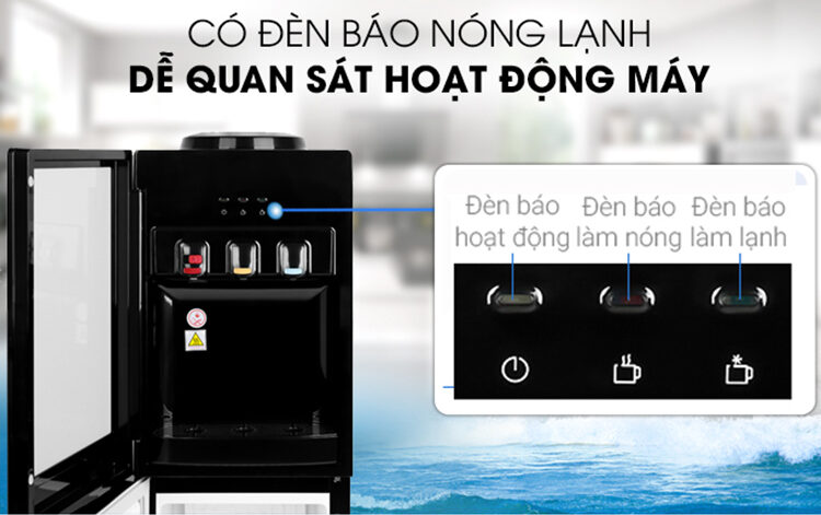 Cây nước nóng lạnh Midea YL1836S-B được trang bị đèn báo làm nóng nước, làm lạnh nước và đèn báo hoạt động giúp người dùng dễ dàng nắm bắt được tình trạng hoạt động của cây nước.