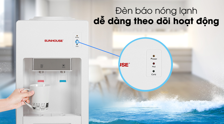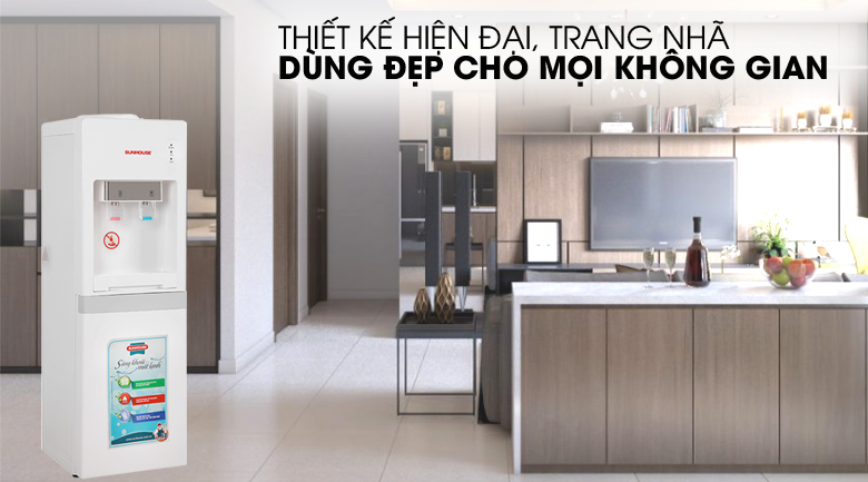Cây nước nóng lạnh Sunhouse màu trắng trang nhã, kích thước nhỏ gọn, kiểu dáng hiện đại dễ dùng cho mọi không gian