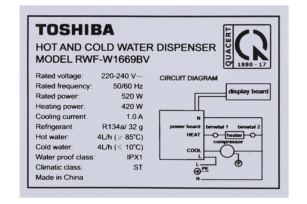 Hoạt động với công suất 520 W, công suất làm nóng 400 W và công suất làm lạnh 100 W