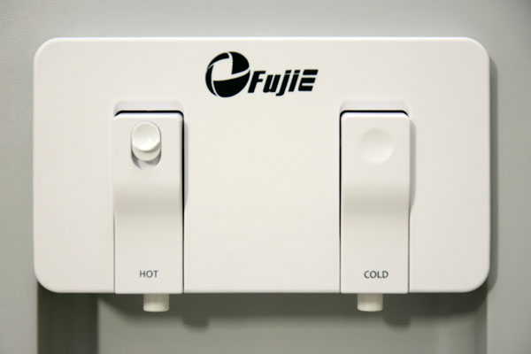Thiết kế đơn giản, màu trắng đi kèm ốp mặt trước, phía trên màu kem trang nhã để tạo cảm giác thoáng đãng, thoải mái cho không gian căn phòng là ưu tiên hàng đầu của các nhà thiết kế của hãng FujiE. Cây nước được thiết kế tinh tết, tối giản hóa, nhưng vẫn đầy đủ chức năng, đem lại cảm giác tiện nghi, hiện đại và dễ sử dụng.