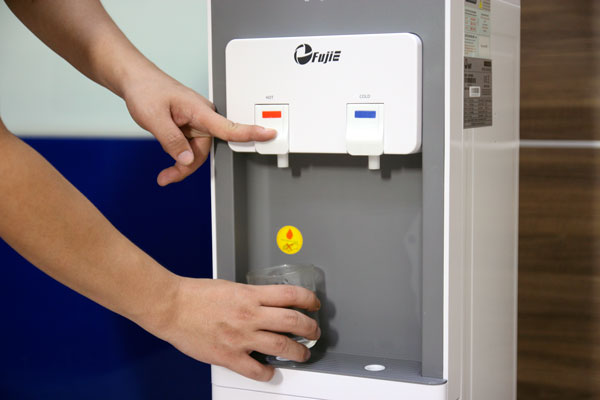 - Cây nước nóng lạnh sử dụng cho gia đình hoặc văn phòng. Cây nước nóng lạnh Fujie WD1900C làm lạnh bằng công nghệ block có khả năng làm lạnh và nóng sâu hơn so với chip điện tử.