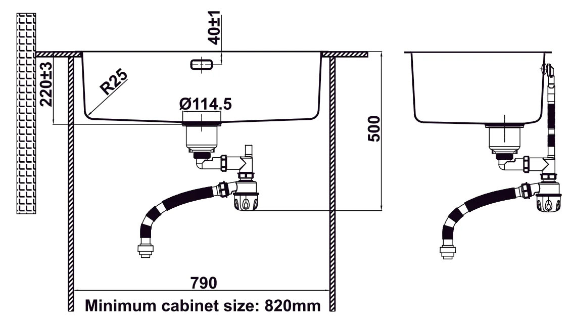 Chậu rửa chén Hafele SUS R25 cải tiến về hệ thống thoát nước với bộ xả rộng giúp tăng dung tích chứa nước, trong khi van nhấn giữ/thoát nước tiện lợi dễ dàng sử dụng. Bộ siphon đi kèm còn được trang bị phễu ngăn mùi trong suốt giúp người dùng dễ dàng phát hiện nguyên nhân tắc nghẽn, đồng thời ống mềm linh hoạt giúp tiết kiệm không gian trong tủ bếp.