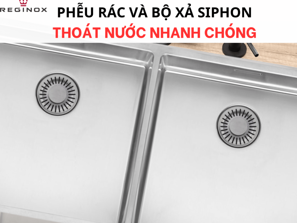 Bên cạnh đó, bộ xả siphon của chậu cũng được thiết kế để thoát nước nhanh chóng và hiệu quả. Nó giúp duy trì dòng chảy của nước mà không gây tràn hoặc tắc nghẽn. Đồng thời, bộ xả siphon còn có khả năng ngăn mùi, không cho mùi hôi từ hệ thống thoát nước lan ra không gian nhà bếp.