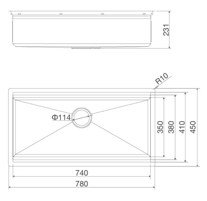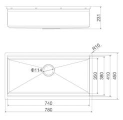 - Lắp âm: kích thước cắt đá 740R x 410S mm (R0)
