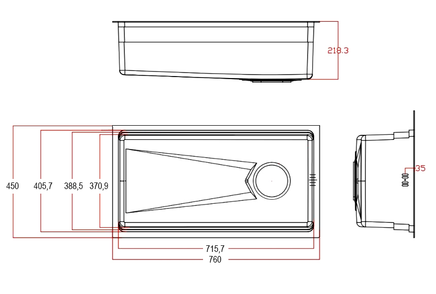 Cấu tạo của chậu 1 hố Gento: GT04 – 7645 New