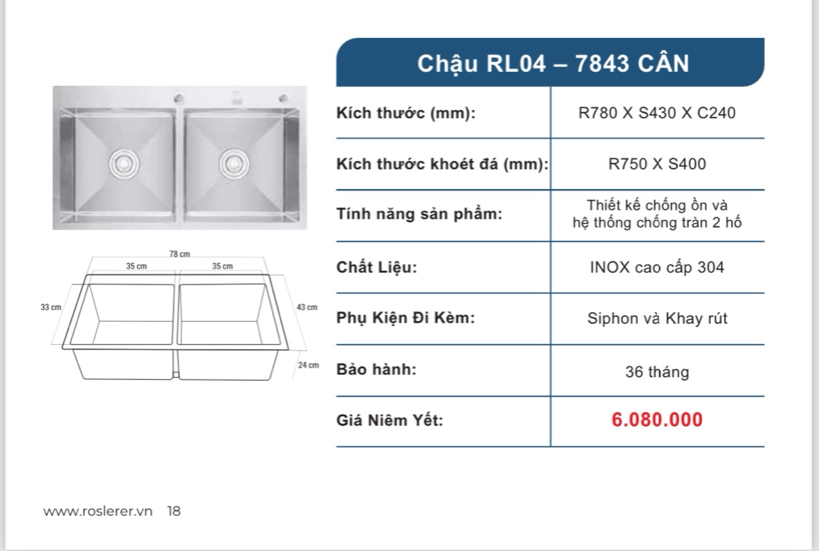 Những phụ kiện này không chỉ tăng cường tính năng cho chậu rửa Roslerer RL04 – 7843 cân mà còn tạo sự thuận tiện cho người dùng trong quá trình sử dụng hàng ngày.