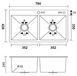 Chậu rửa RL04-7843 Nano Cân thuộc dòng sản phẩm Overmount của Roslerer. Dòng sản phẩm hướng tới phân khúc trung cấp của thị trường và vẫn được sử dụng toàn bộ chất liệu cao cấp. Thiết kế chậu 2 hố cân bằng nhau mang lại tổng thể cân đối cho sản phẩm.