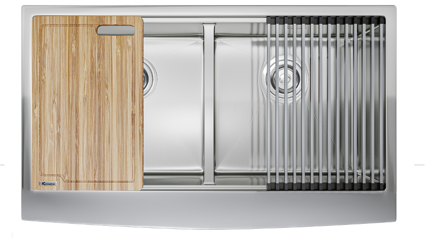 Workstation – Apron Sinks (hay còn gọi Farmhouse Sinks) – dòng sản phẩm được Konox lấy cảm hứng, phát triển từ căn bếp nông trại nơi miền quê yên bình của Pháp, Ý, Anh,…- gian bếp là trái tim của ngôi nhà phong cách đồng quê.