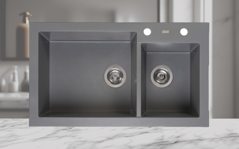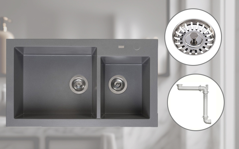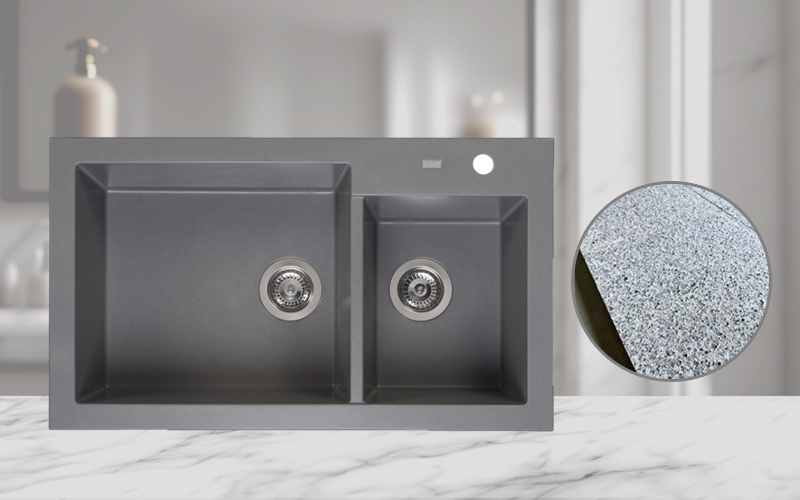 Màu xám của chậu không chỉ đem lại sự mới lạ cho căn bếp của bạn mà còn tạo điểm nhấn độc đáo, làm nổi bật không gian nấu nướng. Chất liệu đá Granite được tinh tế chế tác, mang đến sự mịn màng và đẳng cấp cho không gian bếp của bạn.