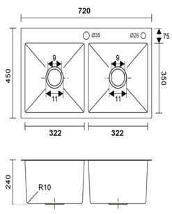Chậu rửa hai hố cân | Roslerer RL01-7245 cân | INOX 301 | thiết kế sang trọng | an toàn và bền bỉ trong quá trình sử dụng |