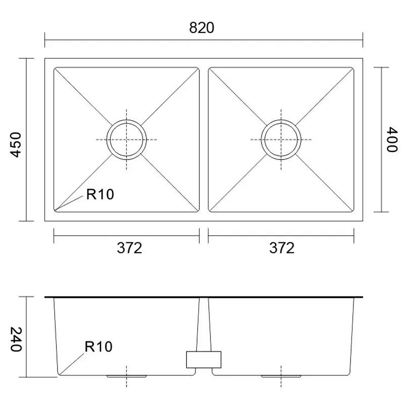 Chậu rửa 2 hố Roslerer RL04-8245 âm toàn phần với bề ngang chậu 820mm, chậu thích hợp với những bàn bếp có chiều ngang vừa phải. Sản phẩm hướng đến phong cách vuông hiện đại, khỏe khoắn. Với bề ngang 820mm, kích cỡ chậu được thiết kế dành cho khoang tủ từ 800-850mm. Chậu rửa 2 hố Roslerer RL04-8245 âm toàn phần thuộc dòng Undermount tối ưu cho phong cách lắp âm đang là xu hướng bởi thẩm mỹ tối giản và dễ dàng vệ sinh.