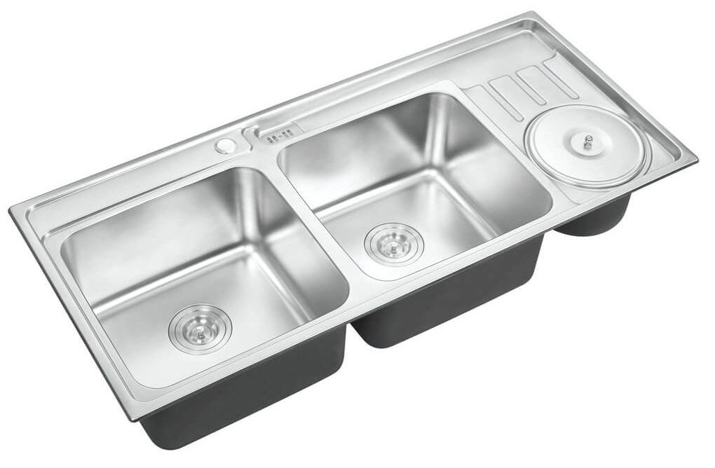 Chậu rửa bát Canzy CZ-1150 với kích thước sản phẩm R1100 x S500 x C230 mm với độ dày 0.8 mm cùng lòng chậu sâu 228mm giúp nước không bị bắn lên trong quá trình rửa chén. Ngoài ra, chậu rửa chén hai ngăn nhờ sự kết hợp giữa bộ xả thông minh ngăn và khử mùi cực kì hiệu quả, cùng với công nghệ hút ẩm độc đáo giúp giảm thiểu các âm thanh và tiếng vang thoát ra từ chén dĩa hay tiếng nước chảy.