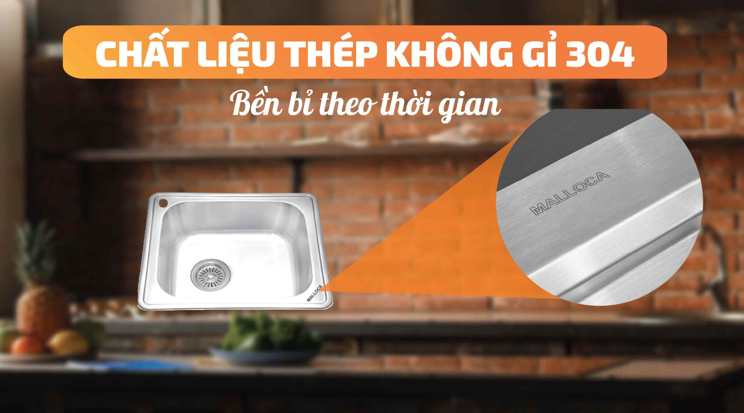 Chất liệu thép không gỉ 304, vượt trội về khả năng chống gỉ, cũng đồng thời mang lại độ bóng và sự sang trọng cho chậu. Điều này đồng nghĩa rằng, dù bạn sử dụng hàng ngày, chậu vẫn giữ được vẻ đẹp ban đầu. Để đảm bảo sự bền màu tốt, Malloca cũng đã áp dụng các công nghệ chế tạo tiên tiến và quy trình kiểm tra chất lượng nghiêm ngặt.