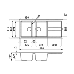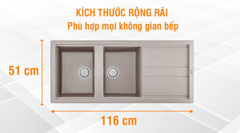 Với kích thước rộng rãi W1.160 x D510 x H217mm lòng chậu sâu, sản phẩm cho phép bạn dễ dàng làm sạch các bát đĩa lớn và nồi chảo một cách thuận tiện.