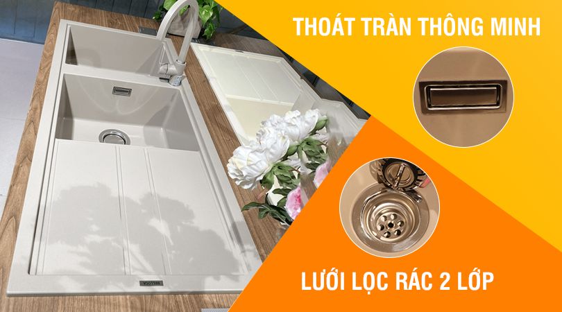 Rổ lọc rác tiện lợi của chậu rửa chén được làm bằng chất liệu inox cao cấp, có độ bền cao và dễ dàng vệ sinh. Phụ kiện này có kích thước vừa phải chứa được nhiều mảnh vụn thức ăn và tay cầm tiện lợi, giúp bạn dễ dàng lấy ra và vệ sinh.