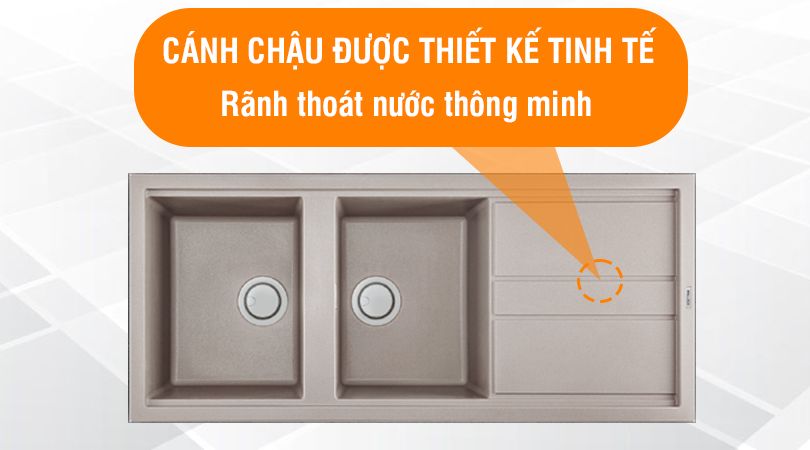 Mặt chậu được thiết kế chống trầy, đảm bảo rằng nó không bị ố màu sau thời gian sử dụng. Điều này giúp đảm bảo rằng sản phẩm sẽ luôn tỏa sáng trong không gian bếp của bạn.