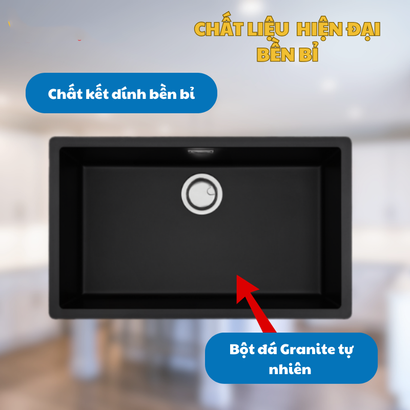 Chậu rửa chén Malloca ZEN K-13040 được làm từ bột đá Granite tự nhiên kết hợp với chất kết dính cao cấp, mang đến vẻ đẹp sang trọng và độ bền vượt trội. Đá Granite nổi tiếng với khả năng chịu lực, chống va đập tốt, giúp sản phẩm duy trì độ nguyên vẹn dù sử dụng trong thời gian dài.