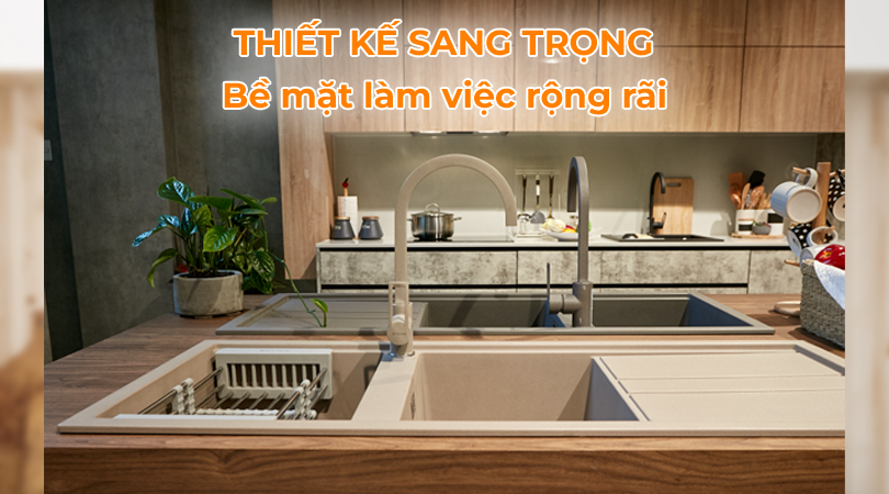 Kích thước chậu là 1160 x 510 x 217mm, phù hợp với nhiều kích thước tủ bếp khác nhau, đảm bảo tính thẩm mỹ và sự phù hợp với không gian nhà bếp của bạn. Chậu cũng có 2 hộc và 1 cánh, tạo ra không gian rộng rãi để bạn có thể rửa chén, rau củ và thực phẩm một cách tiện lợi và hiệu quả.